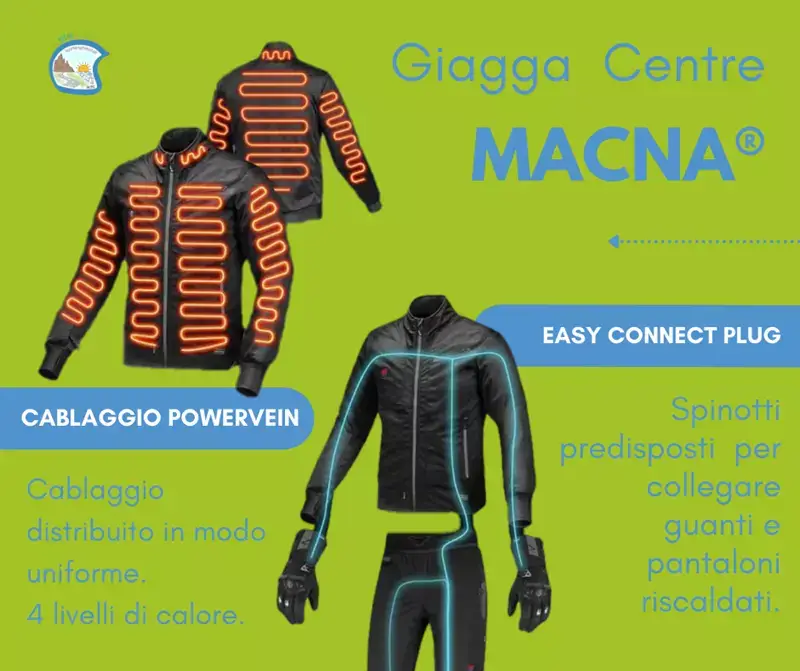 Naturalmente, scegliere un abbigliamento riscaldato per moto coordinato, come quello offerto da Macna, rappresenta un investimento intelligente per chi cerca massimo comfort e praticità. Uno dei principali vantaggi è la possibilità di collegare tutti i capi tra loro – giacca, pantalon, guanti e calze – utilizzando un’unica, o al massimo 2 fonti di alimentazione, così riducendo l’ingombro e il peso di batterie multiple.
